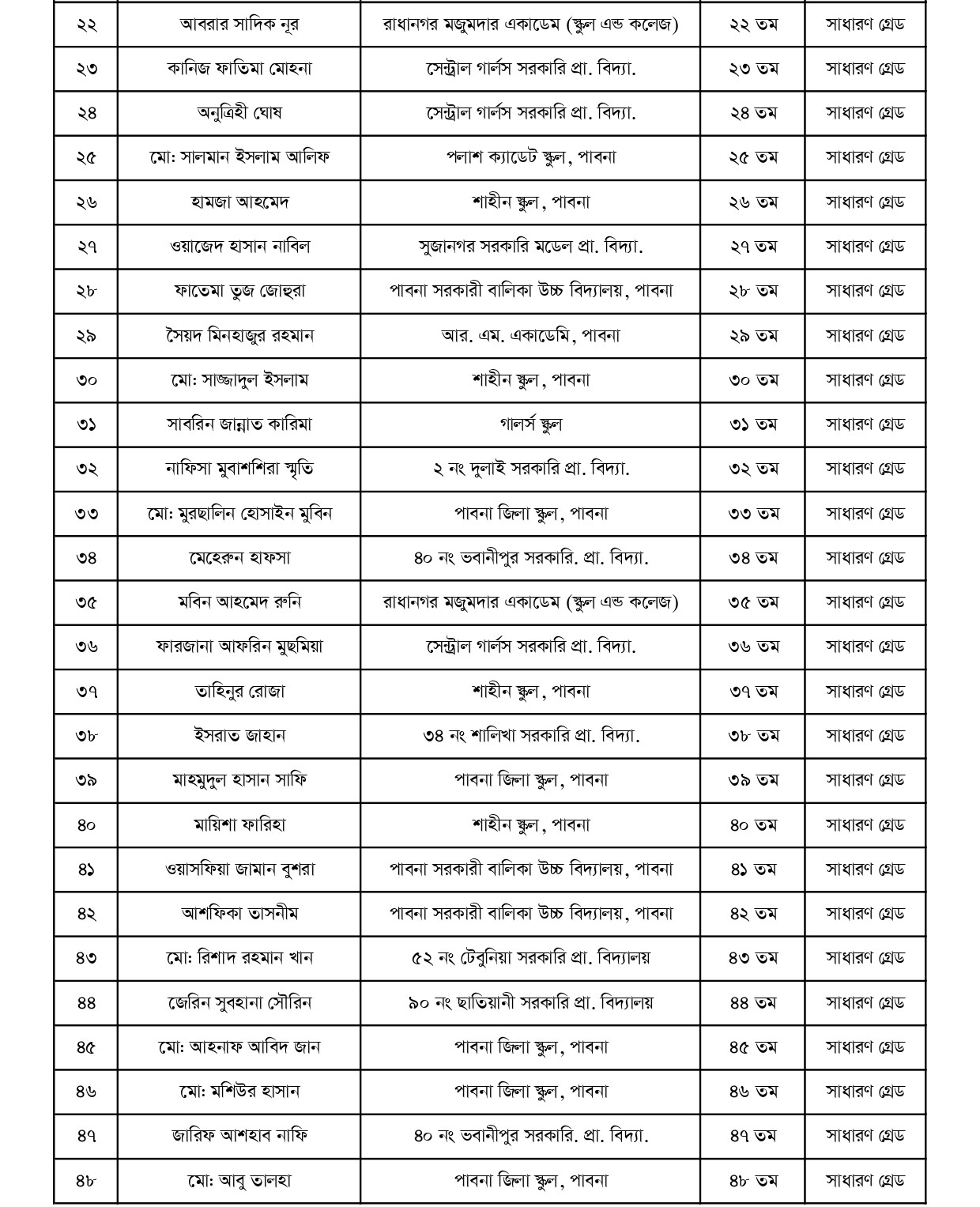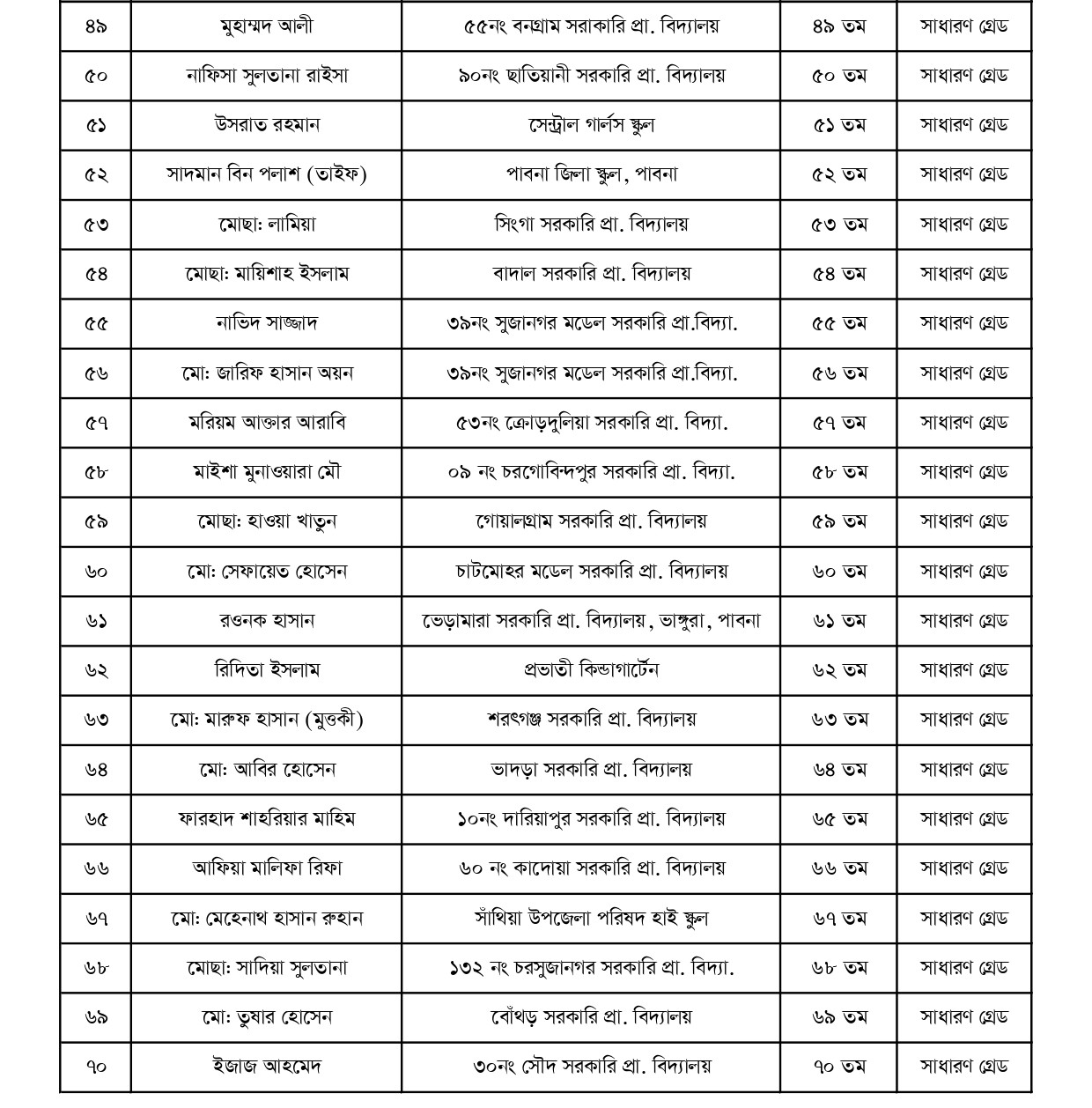 পঞ্চম শ্রেণী- বৃত্তিপ্রাপ্ত শিক্ষার্থীদের নামের তালিকা